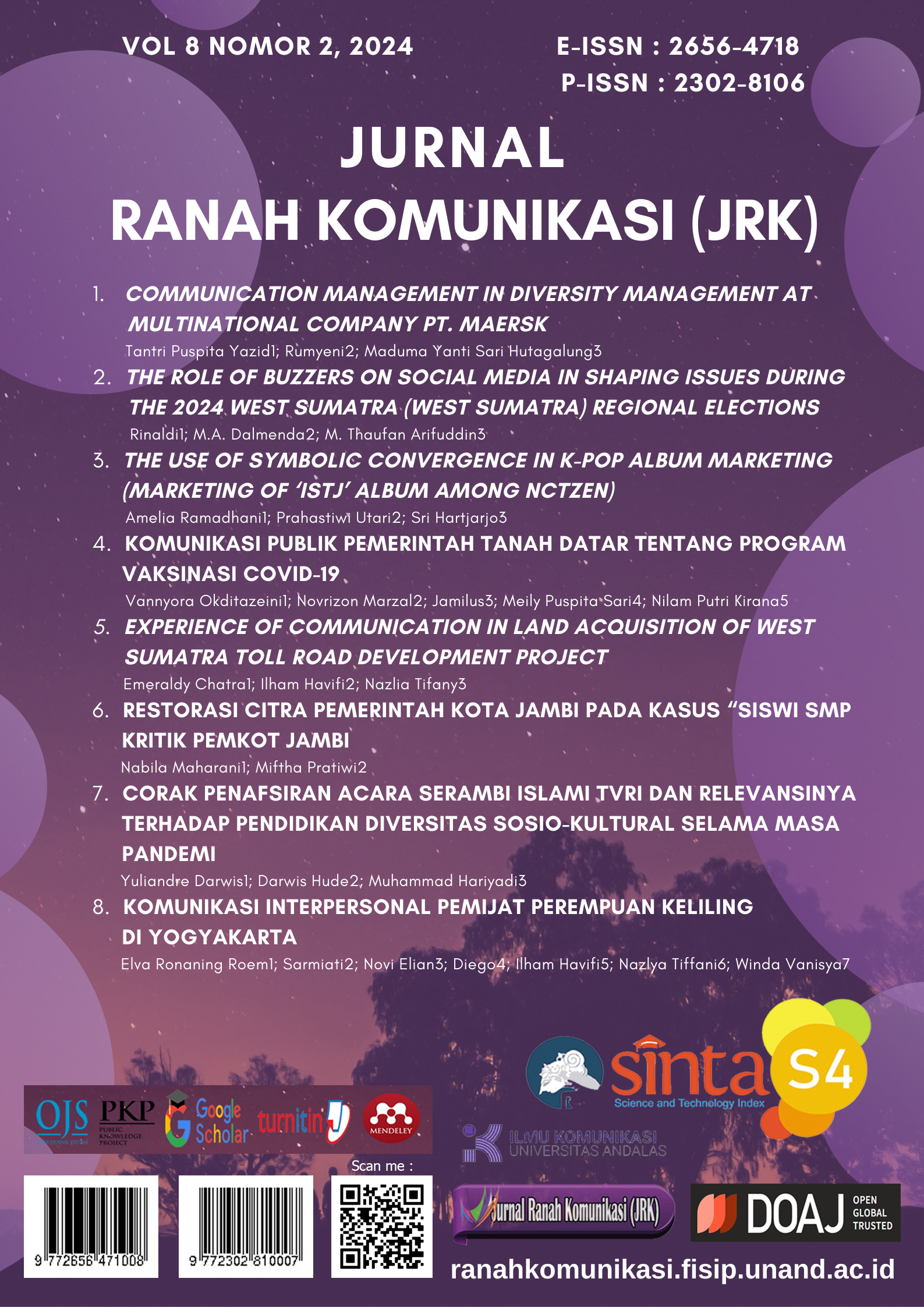 Vol. 8 No. 2 (2024)Jurnal Ranah Komunikasi Volume 8 Edisi 2 Tahun 2024